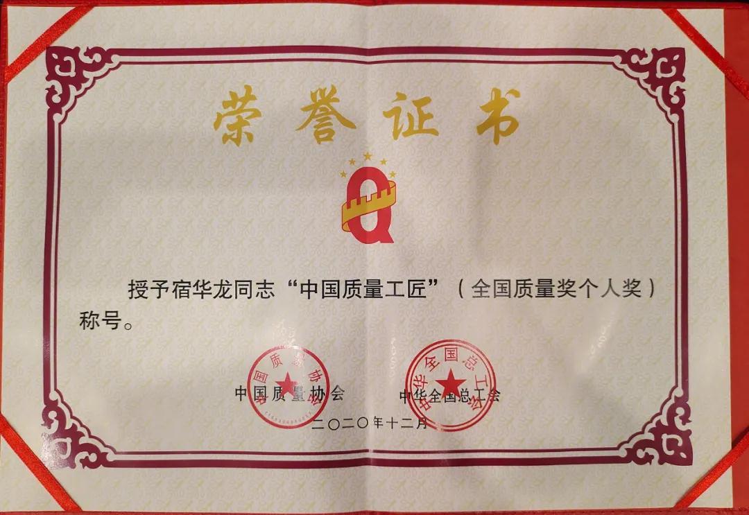 兵器工業(yè)集團(tuán)宿華龍榮獲第十九屆全國(guó)質(zhì)量獎(jiǎng)“中國(guó)質(zhì)量工匠”稱(chēng)號(hào) |